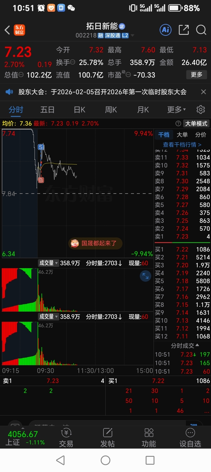 $拓日新能(SZ002218)$ 卖了又买回来手真贱啊