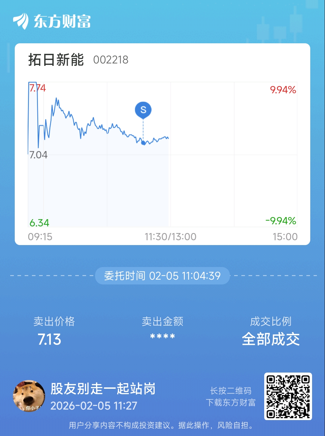 温馨提示: 1.根据《证券法》规定,禁止编造、传播虚假信息或者误导性信息,扰乱证券市场;2.用户在本社区发表的所有资料、言论等仅代表个人观点,与本网站立场无关,不对您构成任何投资建议。用户应基于自己的独立判断,自行决定证券投资并承担相应风险。《东方财富社区管理规定》