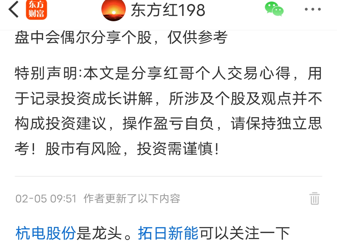 上周分享的,杭电两个涨停,文中已提示昨天已出。拓日收获一个涨停板,恭喜跟上车的伙伴们。锁定自己的利润。杭电目前还是看好的。