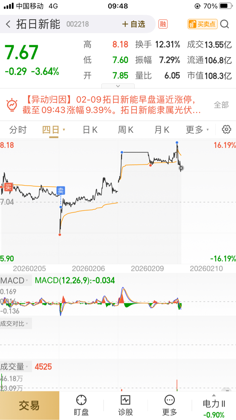 $拓日新能(SZ002218)$ 非常好的做T品种,今天已经有六七个点空间了