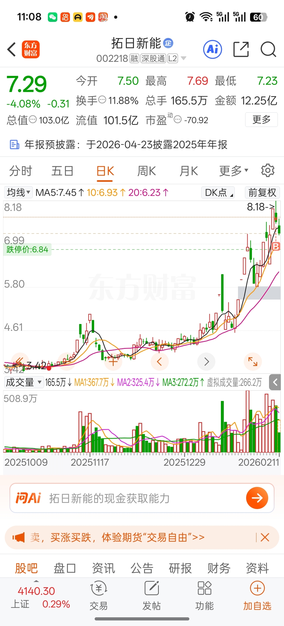 $拓日新能(SZ002218)$ 我真是吐了啊,昨天刚买,今天就跌