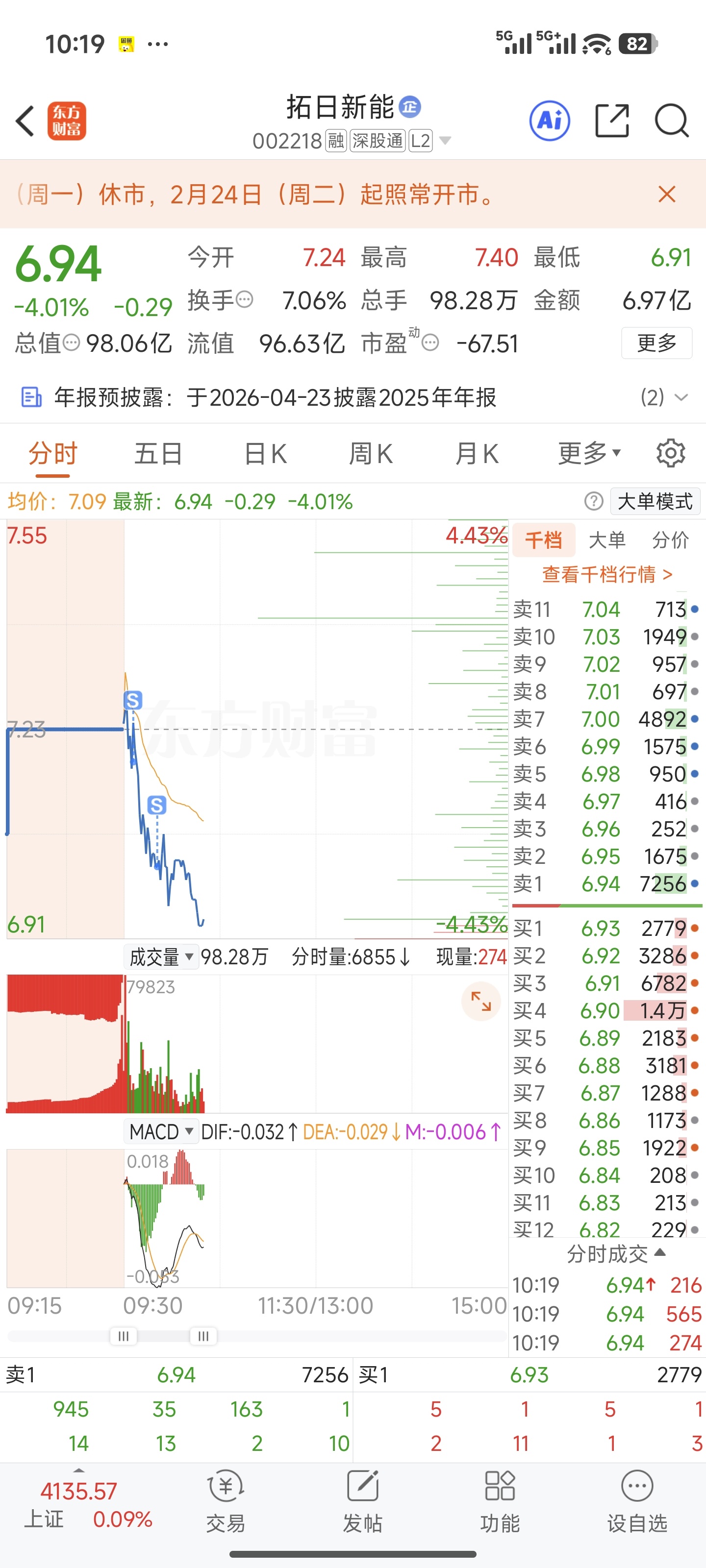 $拓日新能(SZ002218)$ 开盘不好卖一半,实在起不来又卖一半,拜拜