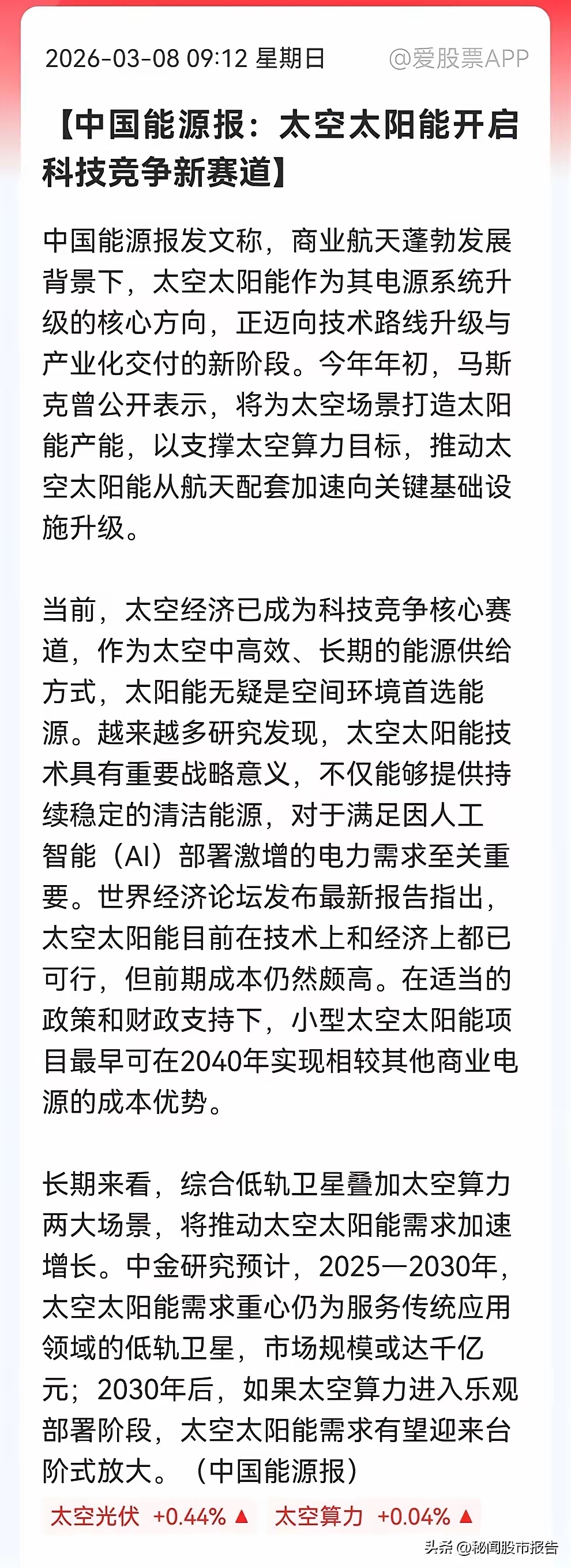 $拓日新能(SZ002218)$ 拓日新能是国内唯一参与中国空间站太阳能电池板供应的民营光伏企业,也是业内公认的“太空光伏第一股”,- 已为“开拓一号”卫星、中国空间站提供产品,拥有13项航天光伏核心专利。- 2024年建成国内首条太空光伏组件中试线,2026年产能将扩至50万片,意向订单超2亿元。