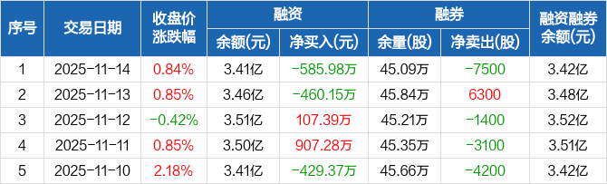 新里程:融资净偿还585.98万元,融资余额3.41亿元(11-14)