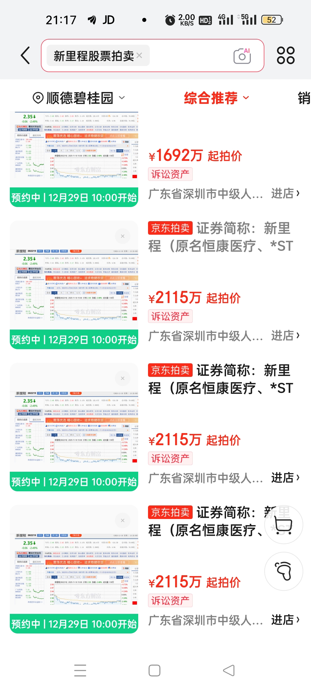 新里程股票12月29日,10点钟拍卖3千8百万股,起拍价2.115/股,如果拍卖