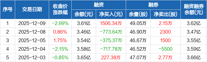 新里程:融资净买入1506.34万元,融资余额3.61亿元(12-09)