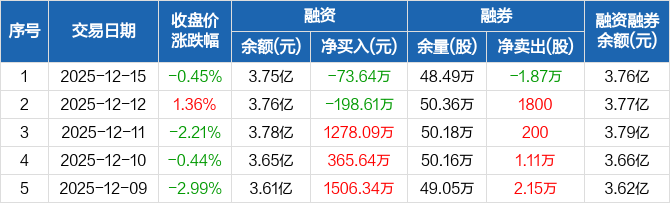 新里程:融资净偿还73.64万元,融资余额3.75亿元(12-15)