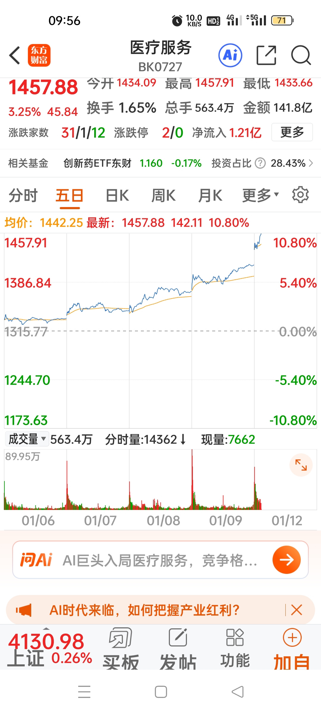 创新医疗就4家医院,现在股价36.96,新里程24家医院股价2.20,板块几天大