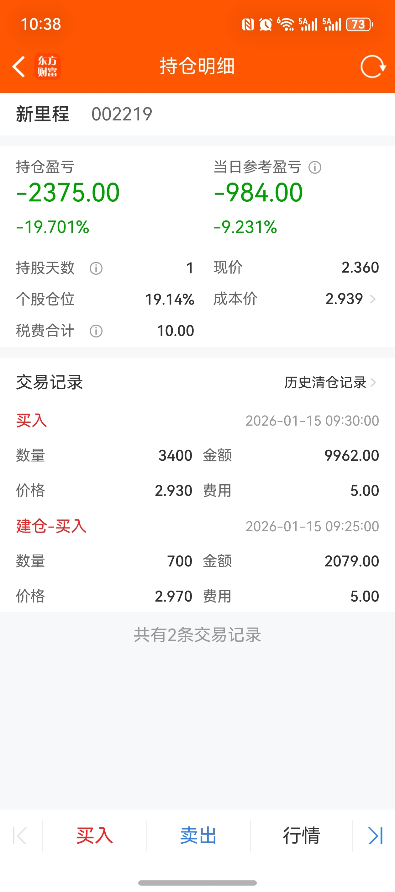 $新里程(SZ002219)$ 我把你个狼蹲下的买进去第1天就亏