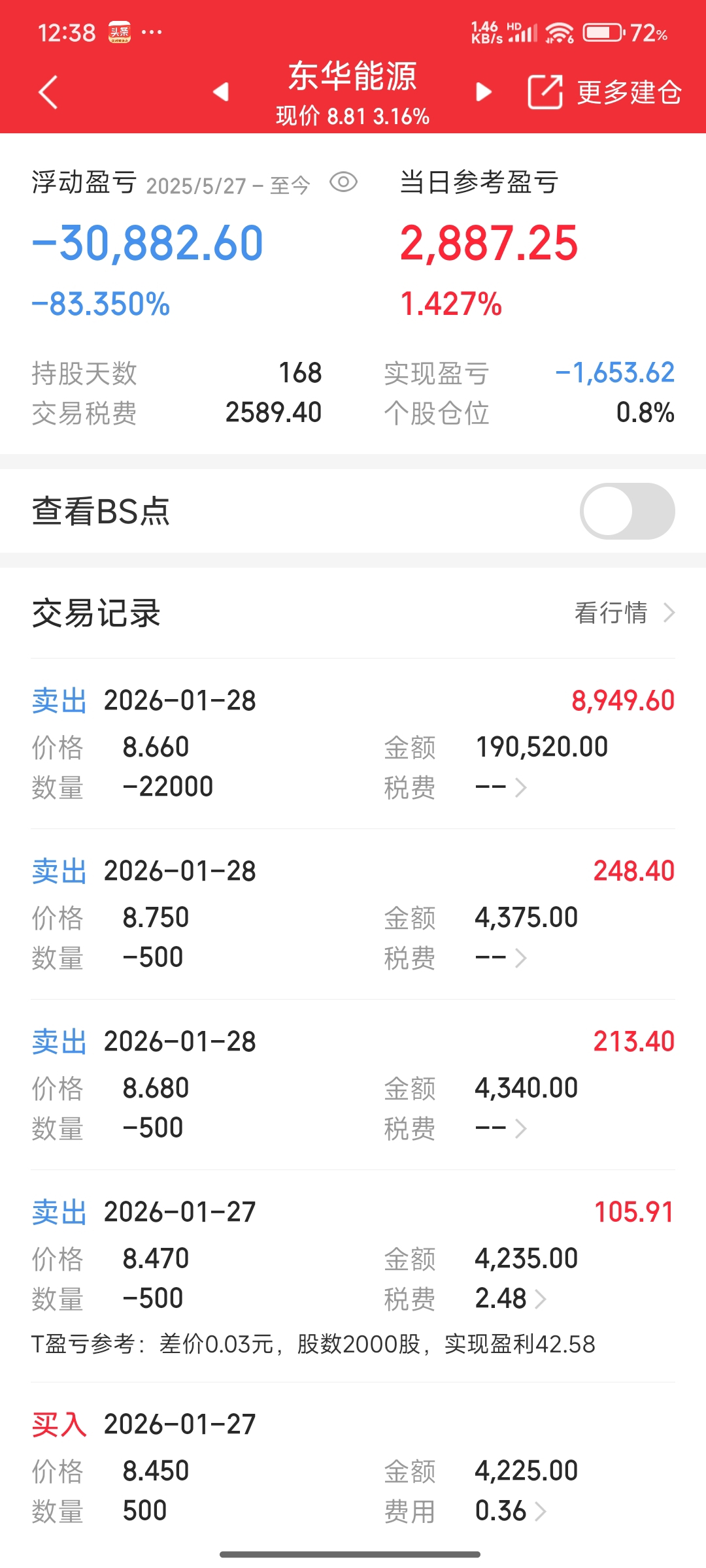 8.66卖掉了亏3万,等下来了再买