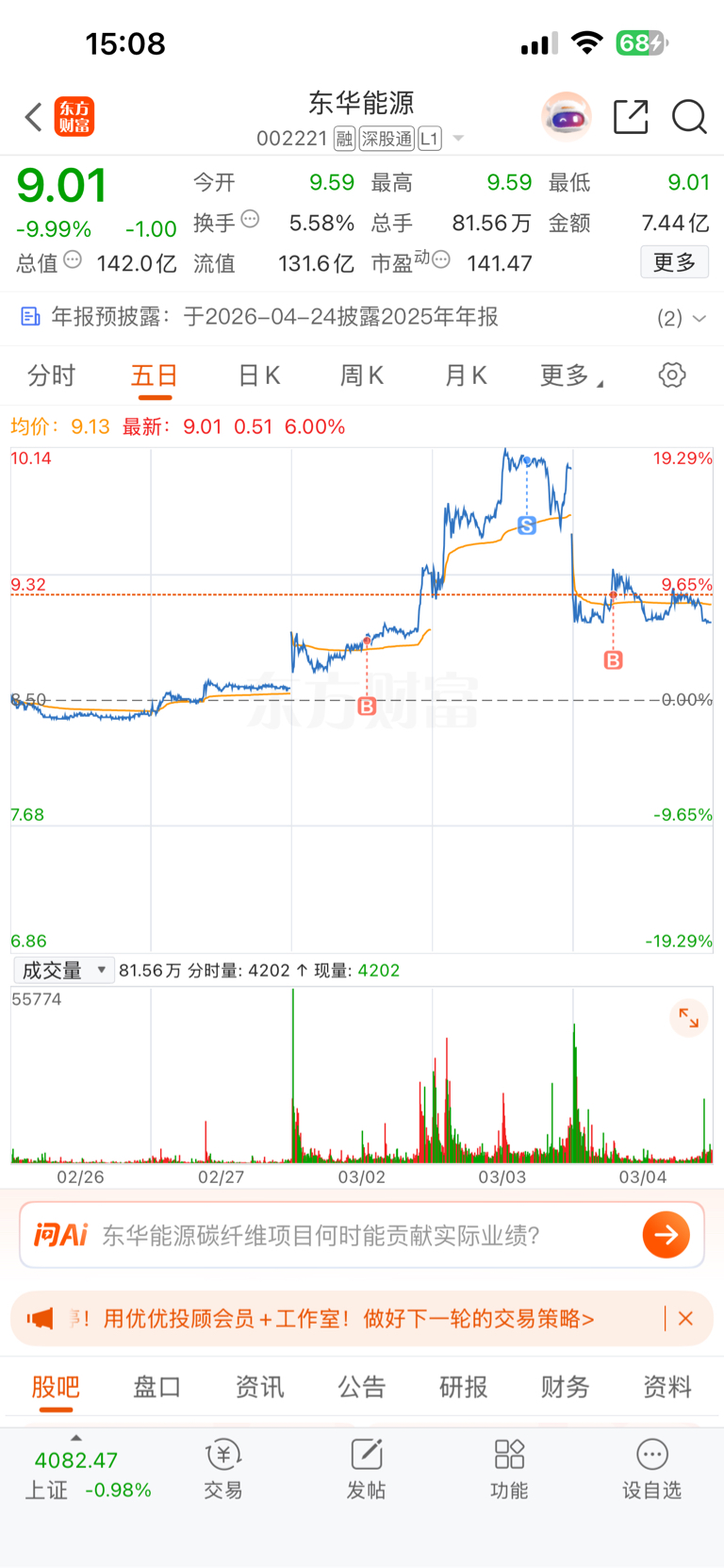 $东华能源(SZ002221)$ 幸运的是昨天跑了,不幸的是今天又进来了……
