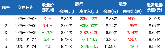 福晶科技:融资净买入2355.22万元,融资余额8.84亿元(02-07)
