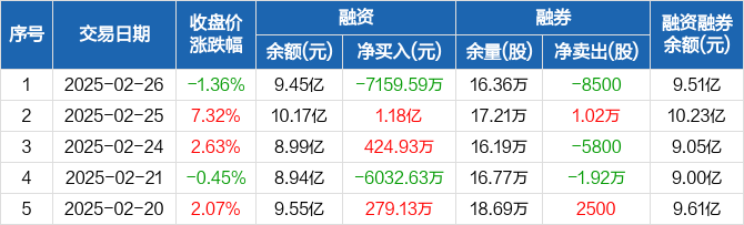 福晶科技:融资净偿还7159.59万元,创近一年新高(02-26)