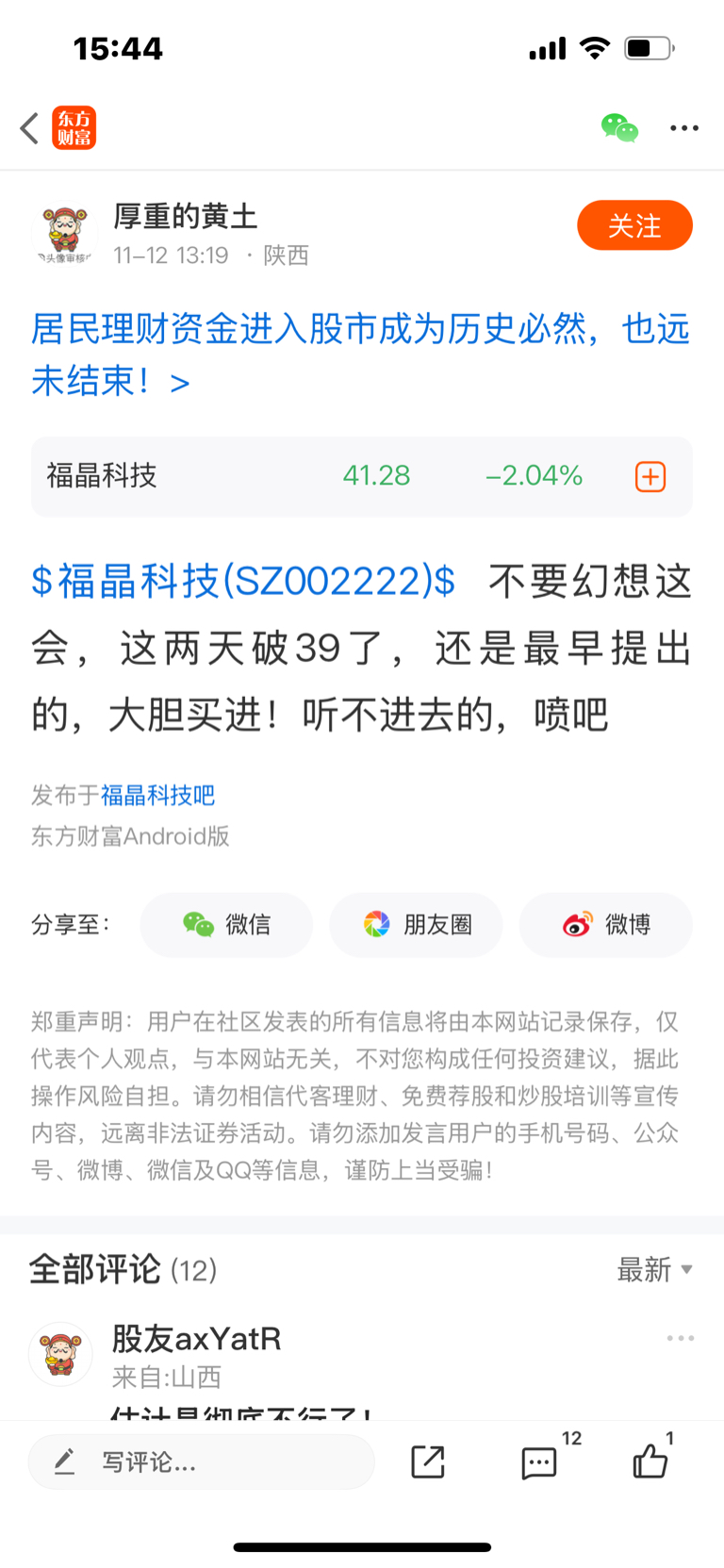 温馨提示: 1.根据《证券法》规定,禁止编造、传播虚假信息或者误导性信息,扰乱证券市场;2.用户在本社区发表的所有资料、言论等仅代表个人观点,与本网站立场无关,不对您构成任何投资建议。用户应基于自己的独立判断,自行决定证券投资并承担相应风险。《东方财富社区管理规定》