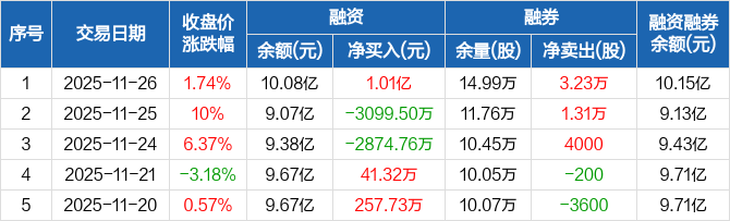 福晶科技:融资净买入1.01亿元,融资余额10.08亿元(11-26)