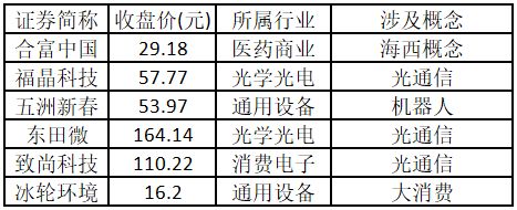 从涨势强度来看,涨停板个股中,股价创出历史新高的个股共有6只,包括合富中国、福晶科技、五洲新春、东田微、致尚科技、冰轮环境。