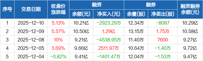 福晶科技:融资净偿还2923.29万元,融资余额10.21亿元(12-10)