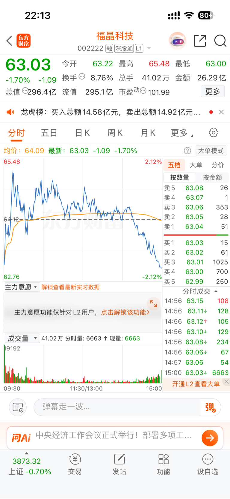 $福晶科技(SZ002222)$ 应该高抛低吸做个T的