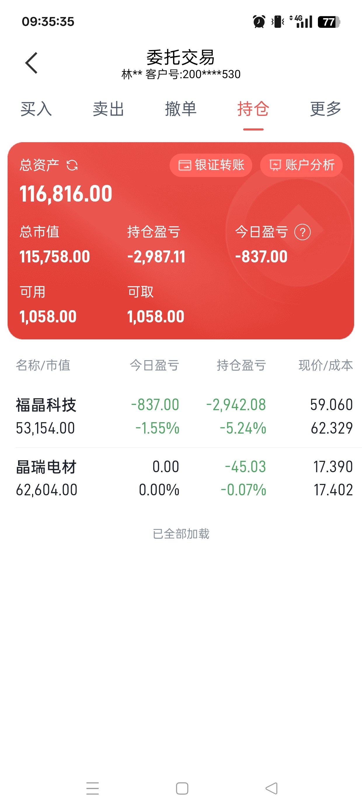 $福晶科技(SZ002222)$ 58.97割肉了。亏了3060元