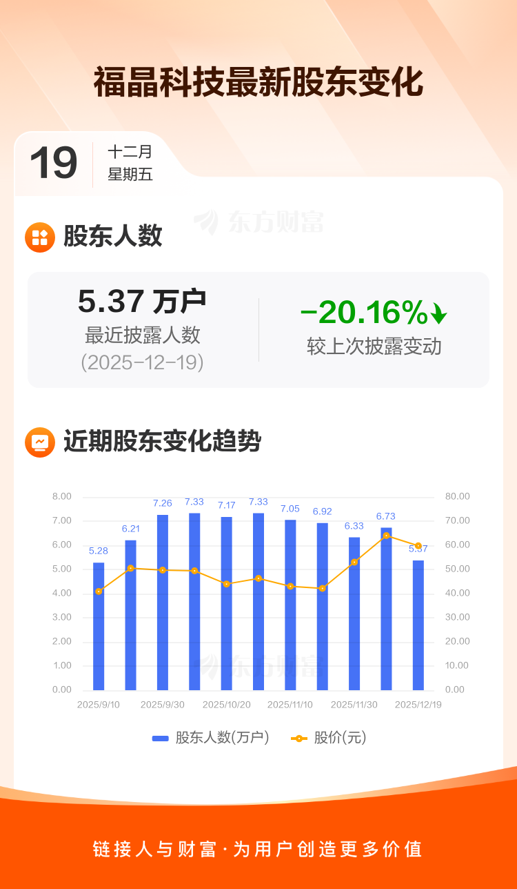 福晶科技:截至12月19日最新股东户数5.37万户,较上期减少20.16%