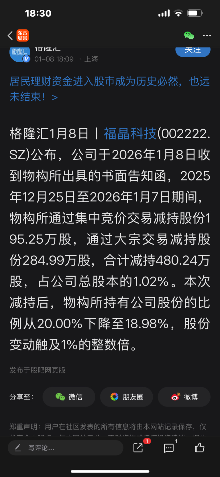 $福晶科技(SZ002222)$ 已减持860万股,还有80万股。毛毛雨拉