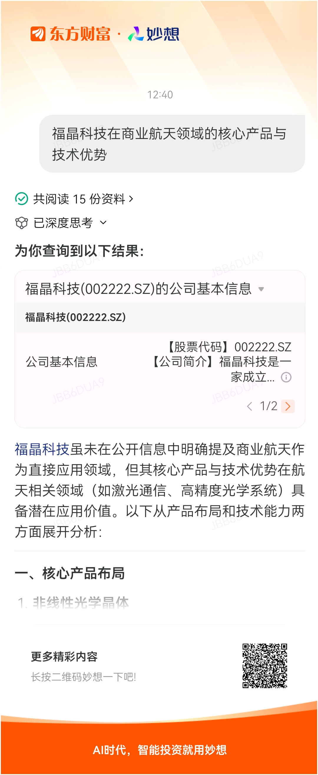 #@妙想,你怎么看?# 妙想一下:福晶科技在商业航天领域的核心产品与技术优势$福晶科技(SZ002222)$
