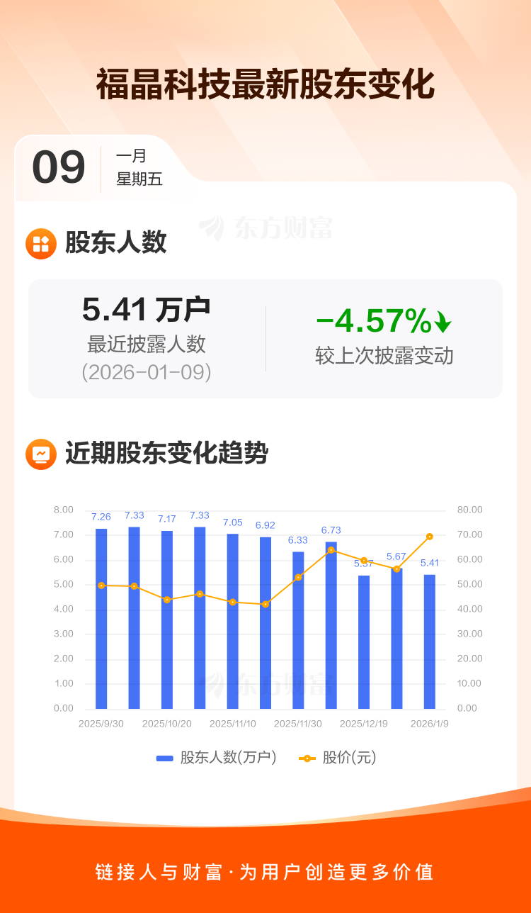 福晶科技:截至1月9日最新股东户数5.41万户,较上期减少4.57%