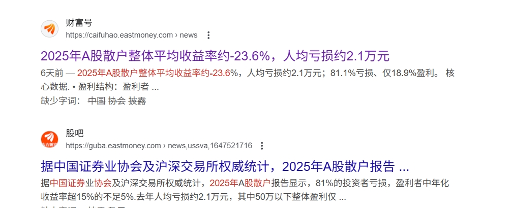 可看看下面中国证券业协会披露的2025年散户成绩单如何?