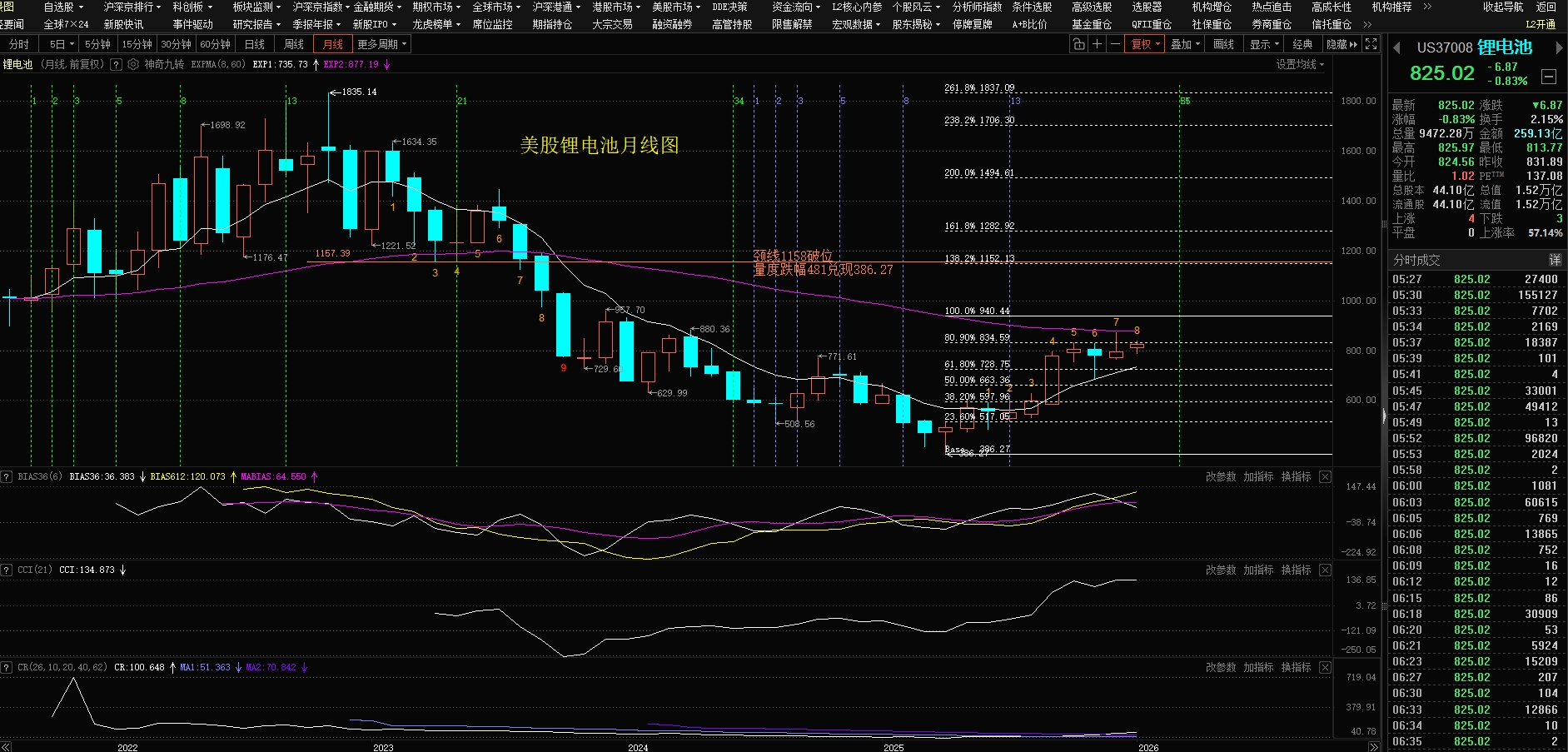 A股锂电池最大跌幅-51.45%,可如今却创新高,反弹到黄金分割位261.8%!