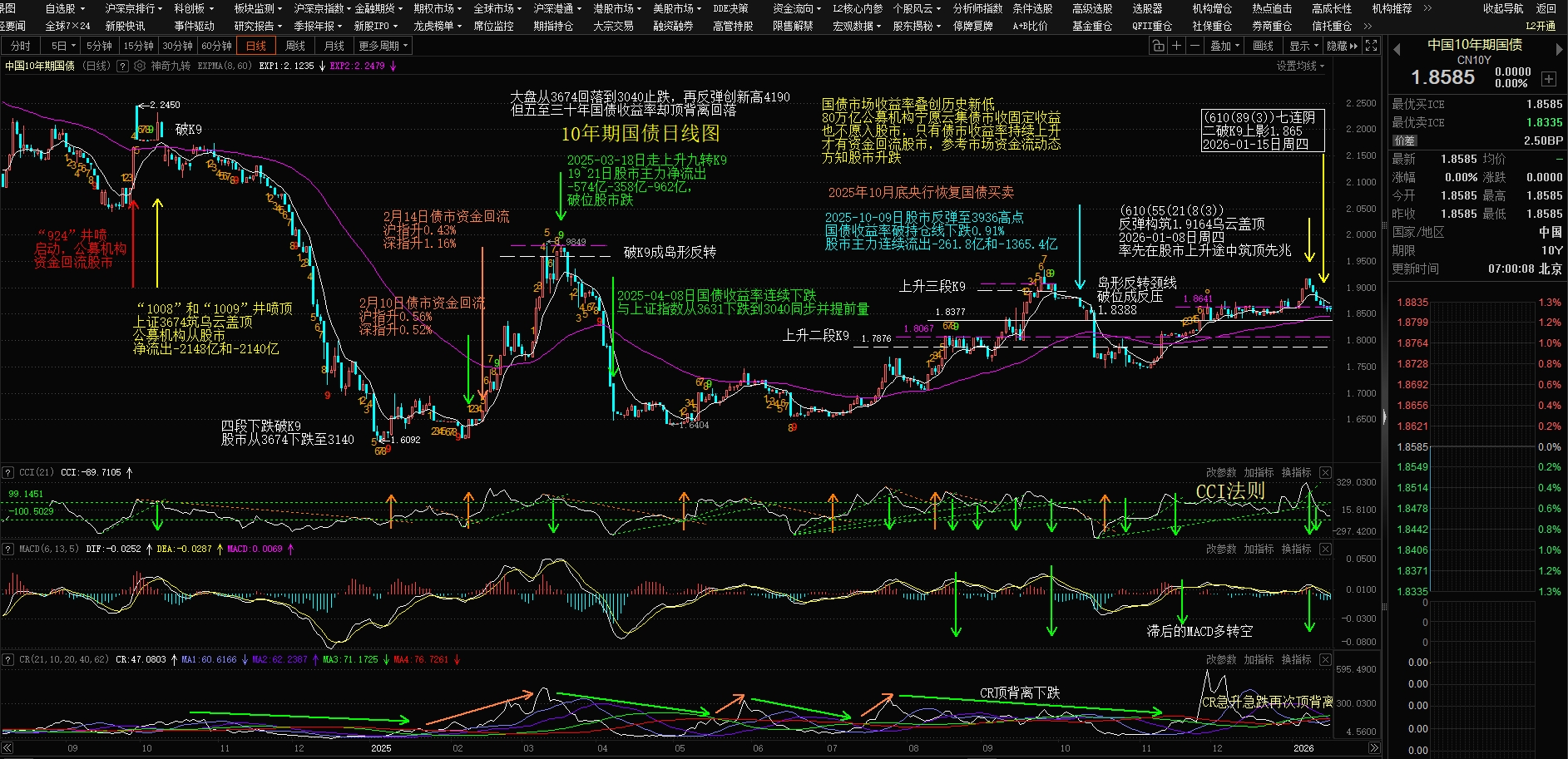 在对一位怼顶的股友辩论过程中,提到中美日股市与国债收益率的互负相关作用,下面就欣赏我对以十年期国债收益率走势与股市顶底转换的先兆反映,同样,至三十年等国债收益率走势也是互为负相关趋势,请点击放大文字解读“时空价量”四要素!