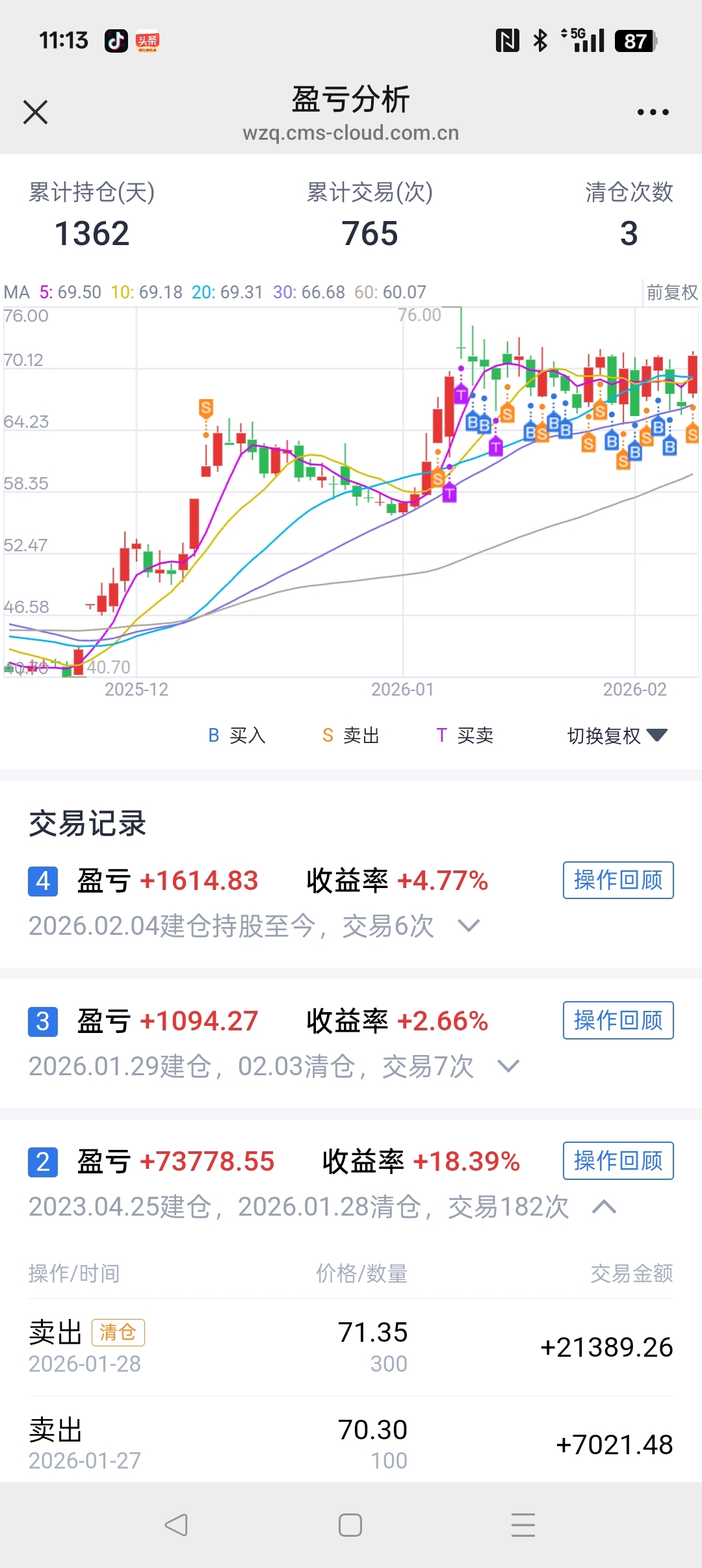 主力很棒!你就在70上下波动个几年吧!我很喜欢!T的很爽