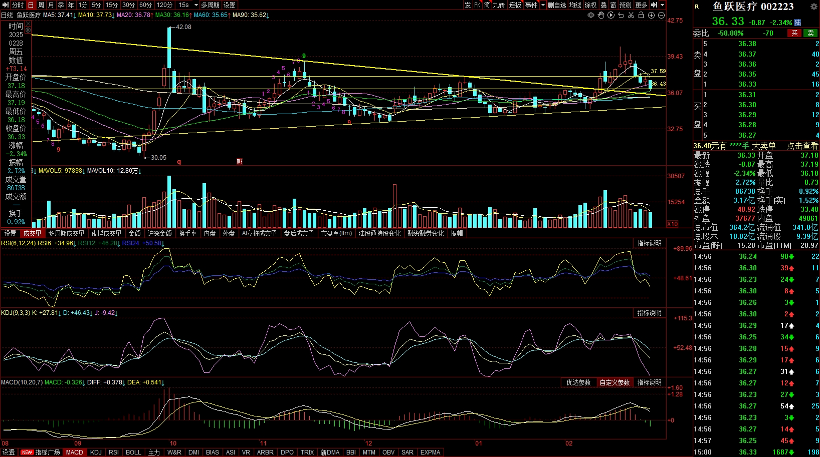 $鱼跃医疗(SZ002223)$ 已经到多方支撑位,而且支撑够强,周五大盘这么个跌法都没跌下去,可以考虑建仓了。真到强支撑34元多再补仓。
