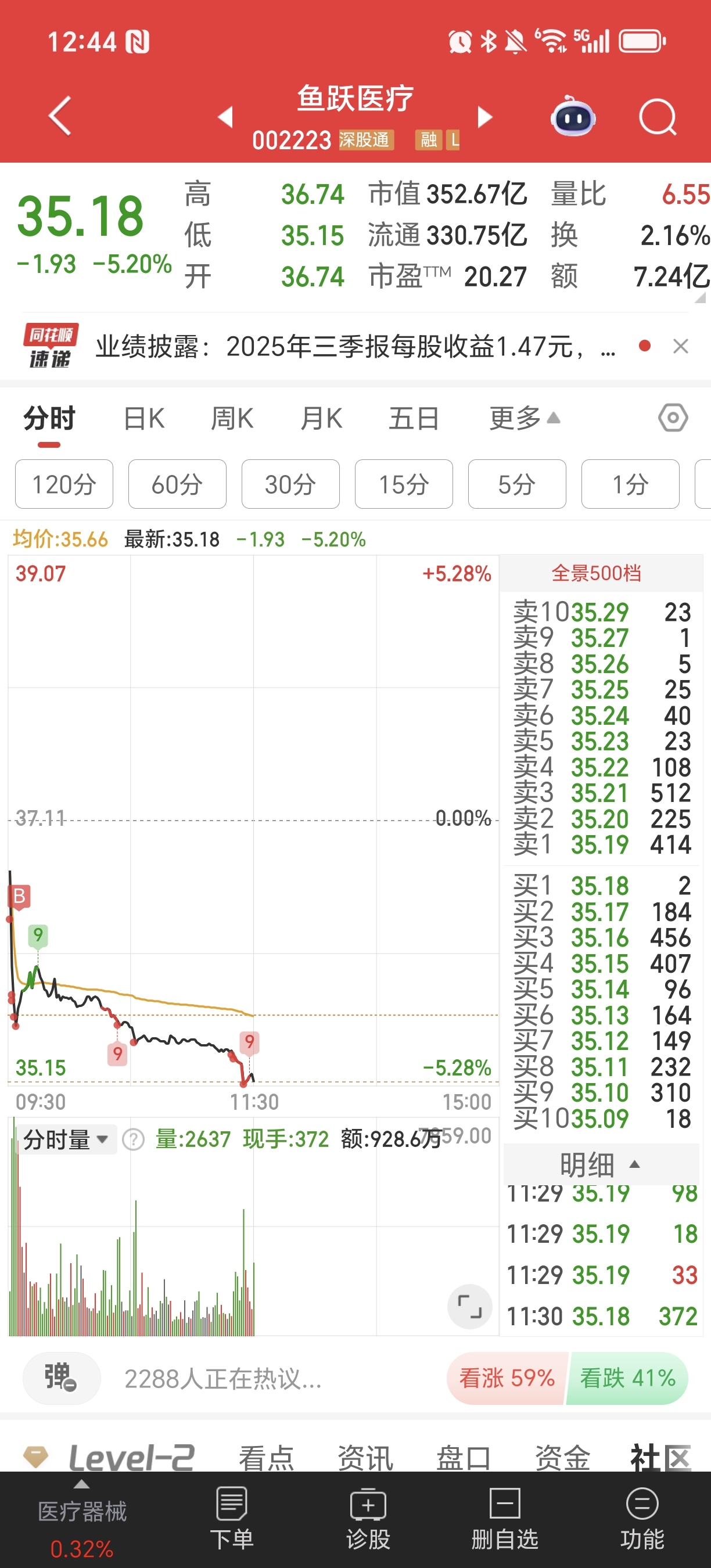 $鱼跃医疗(SZ002223)$ 看这个分时线,下午像要跌停!