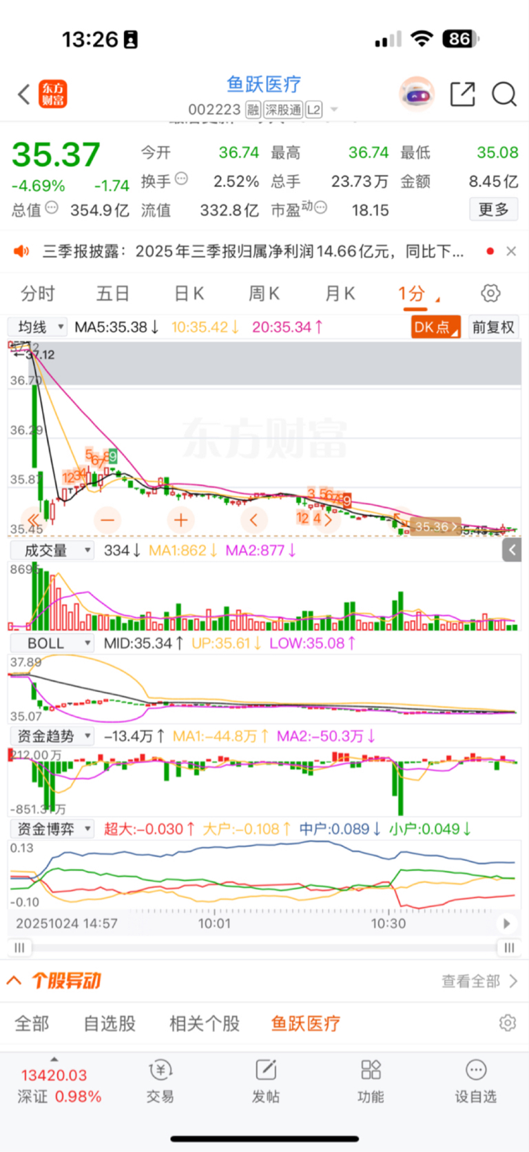 $鱼跃医疗(SZ002223)$ 记录一下。难得异动。