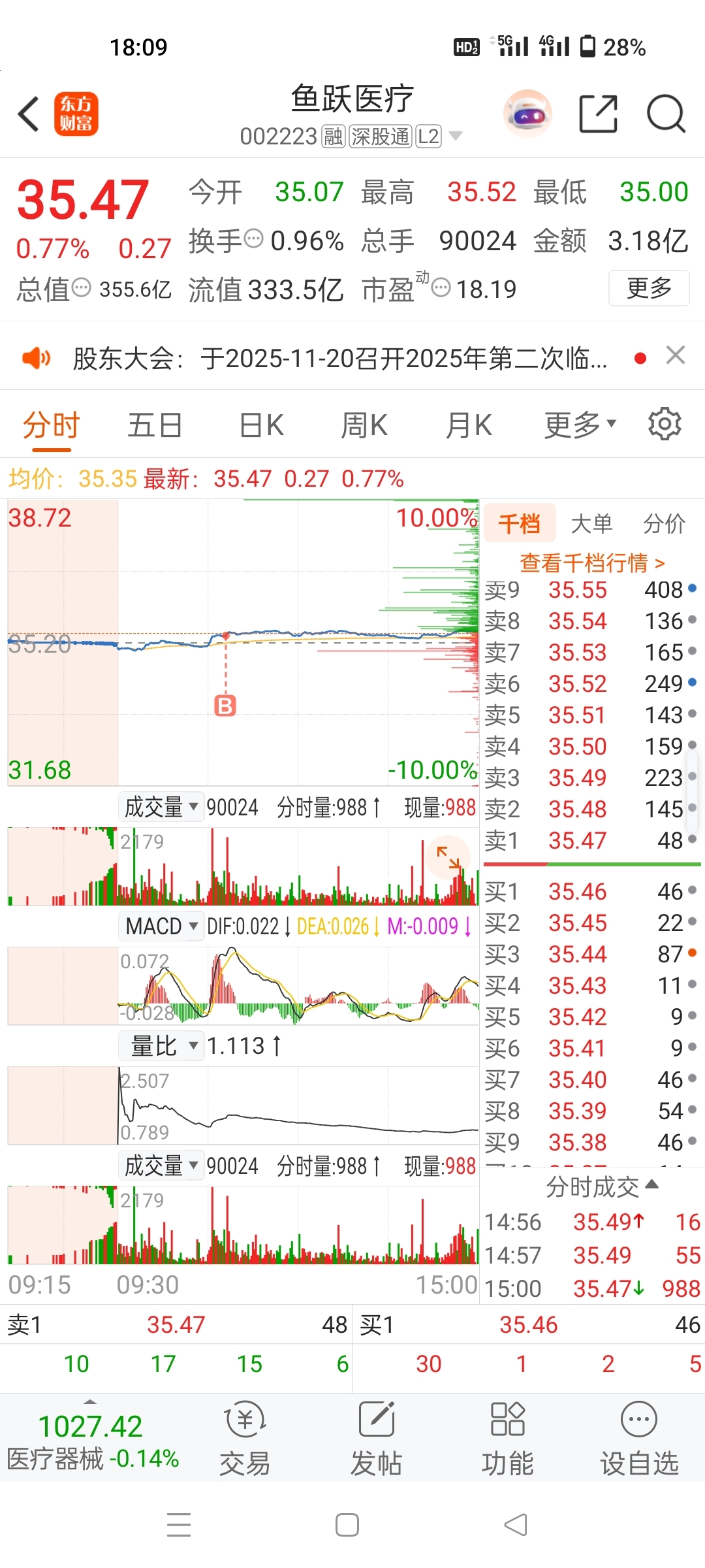 $鱼跃医疗(SZ002223)$ 大家小心了,我买啥啥跌,刚割了中兴通讯来了这。亏一个月了。