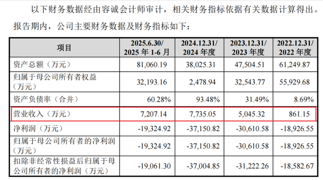 随着技术获得认可,公司营收呈现快速上升趋势。《招股说明书》显示,2022年至2024年,营收从861.15万元增长至7735.05万元,三年内增长近九倍。2025年上半年营收达7207.14万元,接近去年全年水平。这一增长主要得益于CH-VAD产品的商业化推进,该产品已在全国80多家医院完成超过670例临床植入,销售收入从2022年的827.20万元增至2024年的6705.98万元,显示出良好的市场接受度。