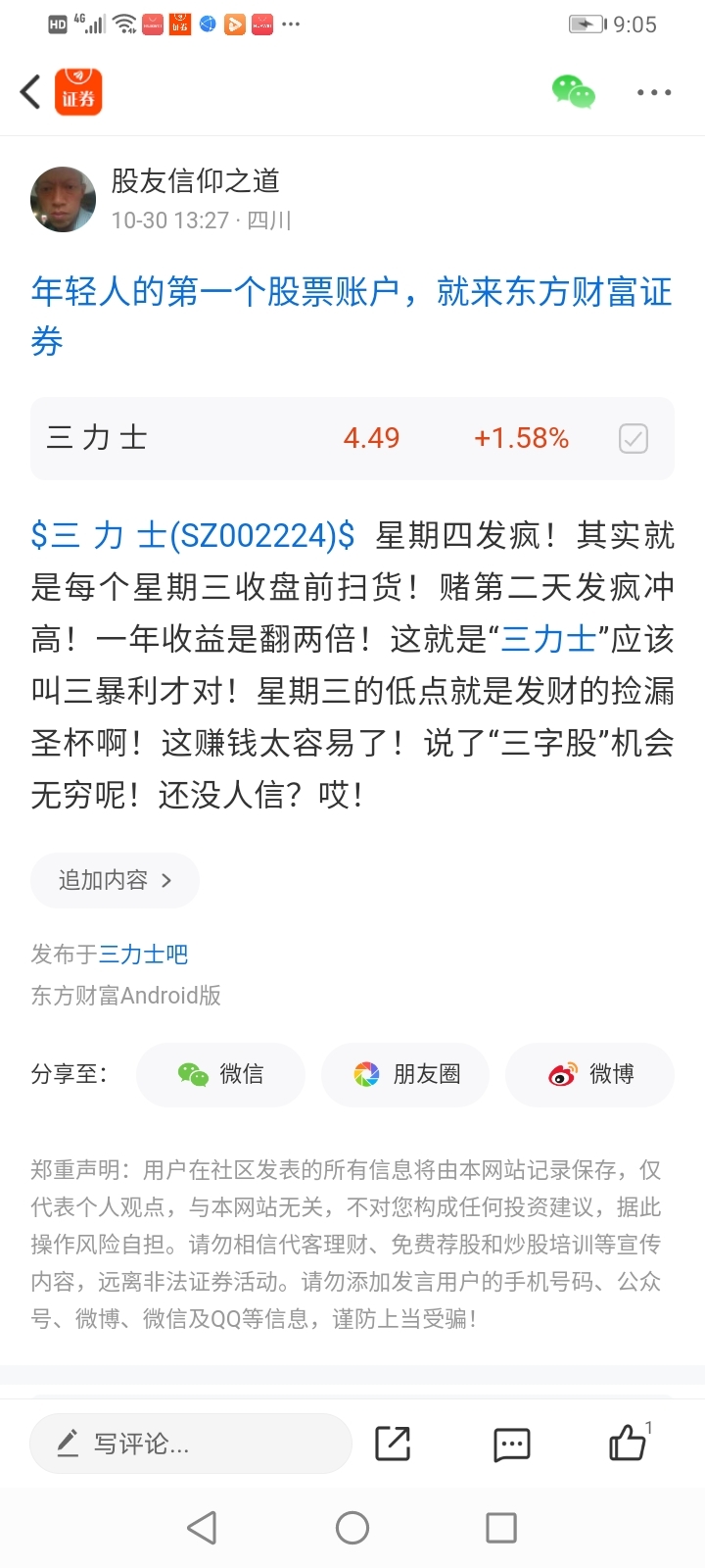 温馨提示: 1.根据《证券法》规定,禁止编造、传播虚假信息或者误导性信息,扰乱证券市场;2.用户在本社区发表的所有资料、言论等仅代表个人观点,与本网站立场无关,不对您构成任何投资建议。用户应基于自己的独立判断,自行决定证券投资并承担相应风险。《东方财富社区管理规定》