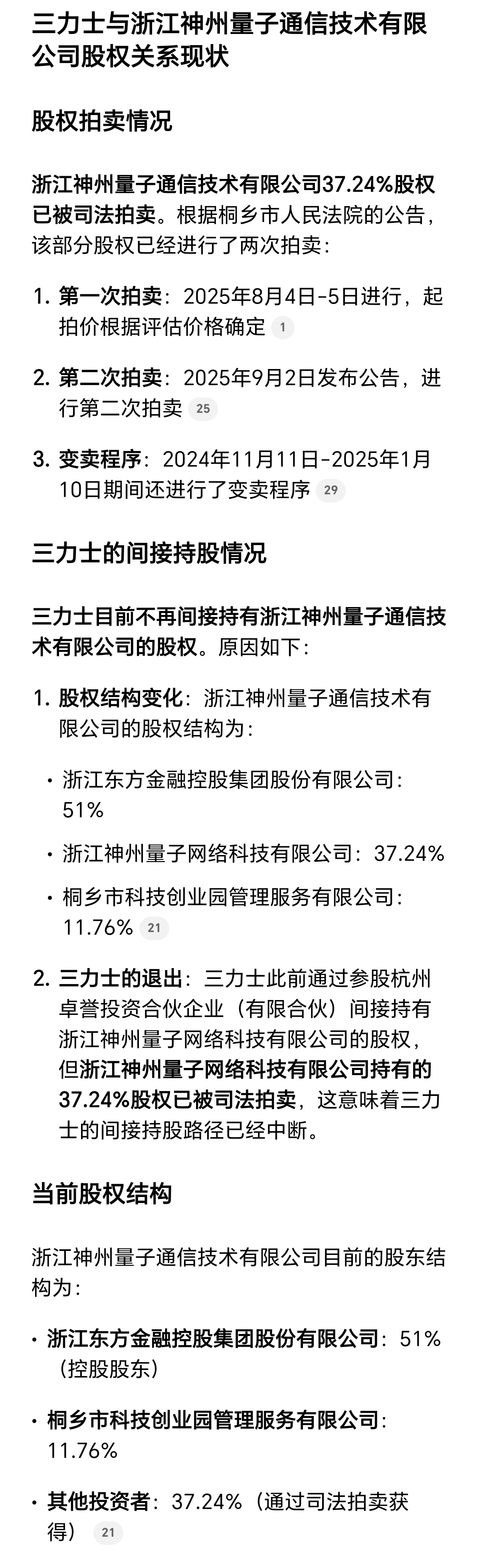 $三 力 士(SZ002224)$ 三力士到底有没有退出浙江神州量子通信公司???