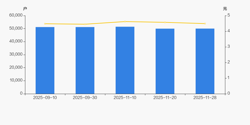 2025年9月10日至今,公司股东户数有所下降,区间跌幅为2.28%。2025年9月10日至2025年11月28日区间股价上涨0.22%。