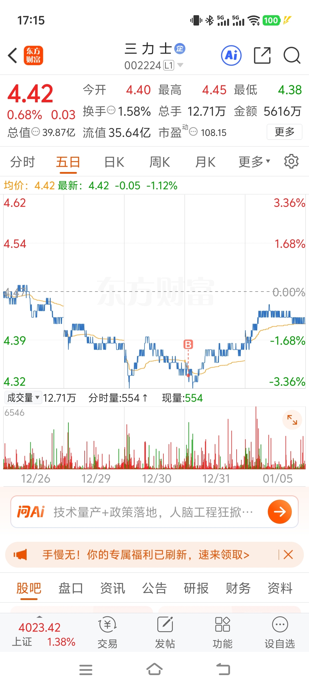 $三 力 士(SZ002224)$ 涨得真快啊。 股市就像提款机一样。明天再涨就得卖了。