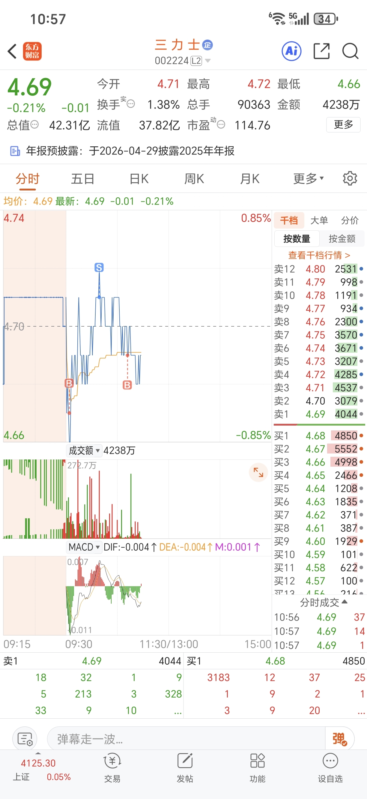 $三 力 士(SZ002224)$ 搞几百手做T,过年红包不就有了吗
