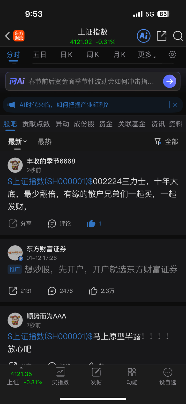温馨提示: 1.根据《证券法》规定,禁止编造、传播虚假信息或者误导性信息,扰乱证券市场;2.用户在本社区发表的所有资料、言论等仅代表个人观点,与本网站立场无关,不对您构成任何投资建议。用户应基于自己的独立判断,自行决定证券投资并承担相应风险。《东方财富社区管理规定》