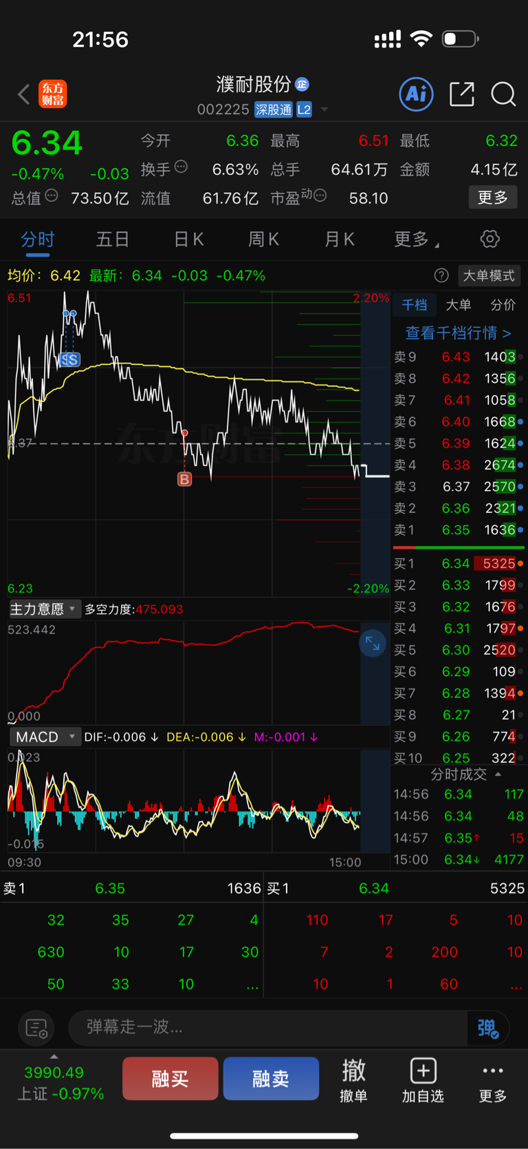 $濮耐股份(SZ002225)$ 买了100股等待6.00-6.10再来