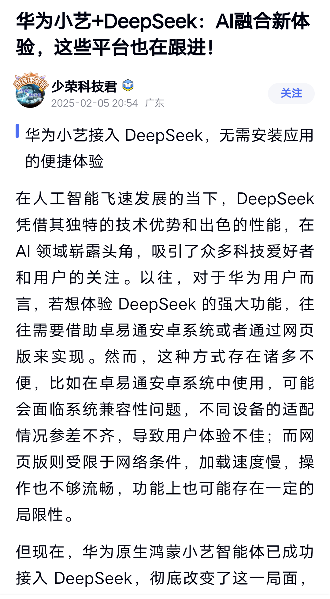 江南化工持股北京光年无限科技有限公司12.91%的股权,华为与北京光年合作推出家庭机器人,《小艺精灵》华为小艺率先接入DeepSeek。。。