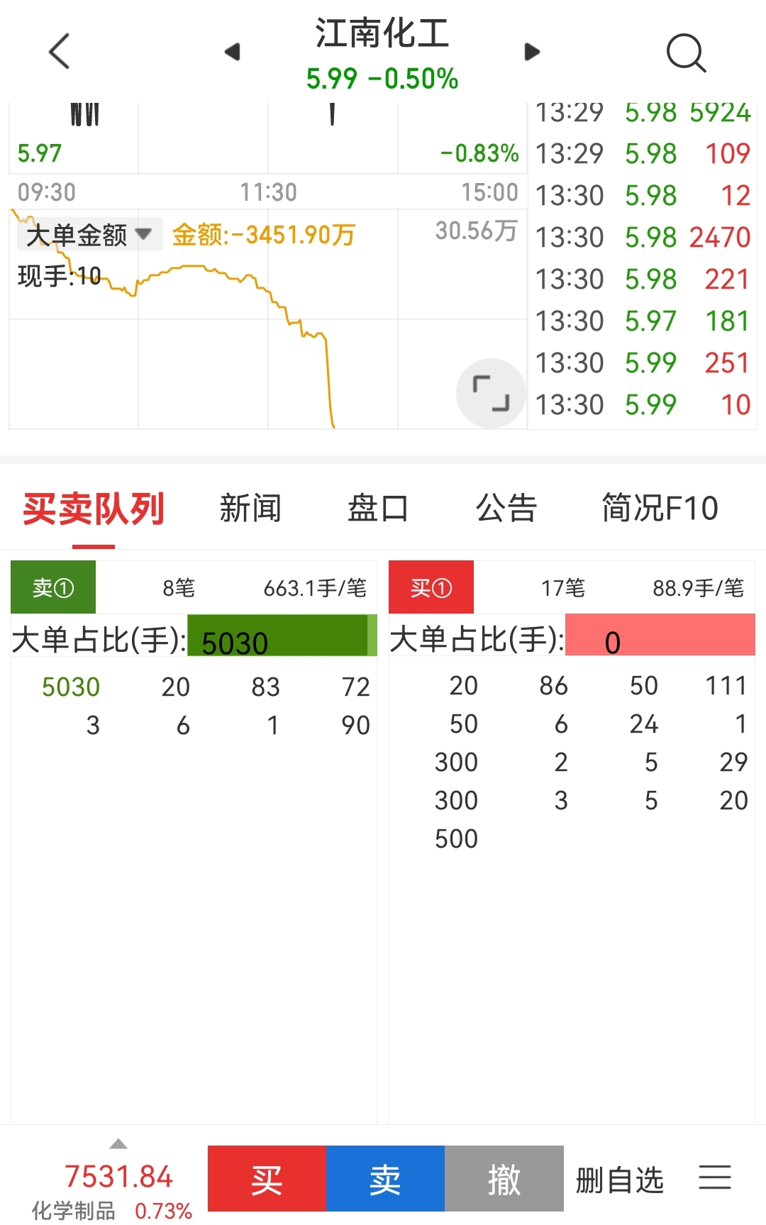 江南化工里卖单里主力一直在出货