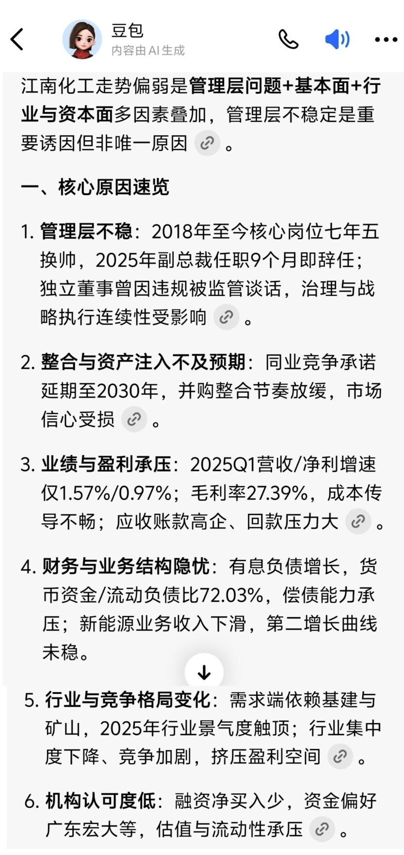 $江南化工(SZ002226)$ 豆包点评江南化工