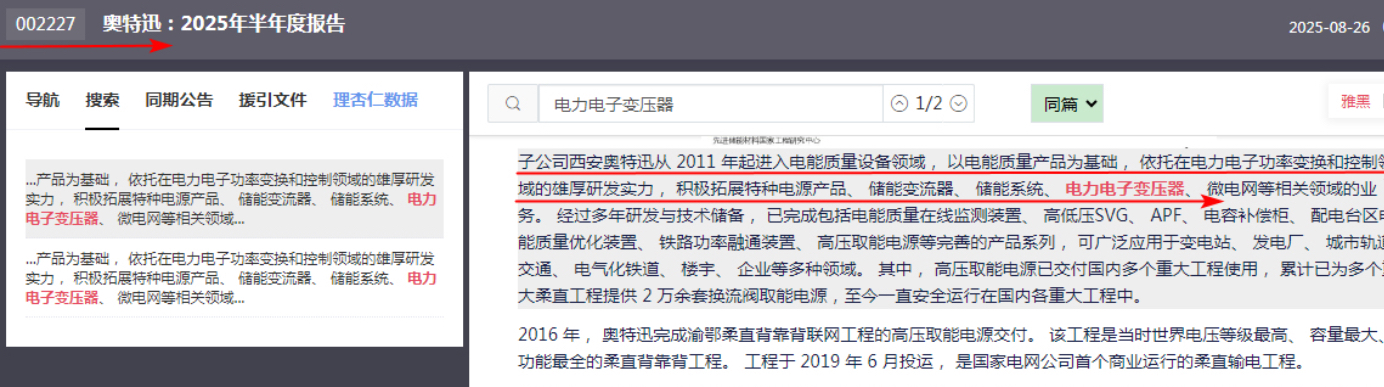 奥特迅今天拉升应该是年报里提及的电子电力变压器,也就是固态变压器,今天这个概念多