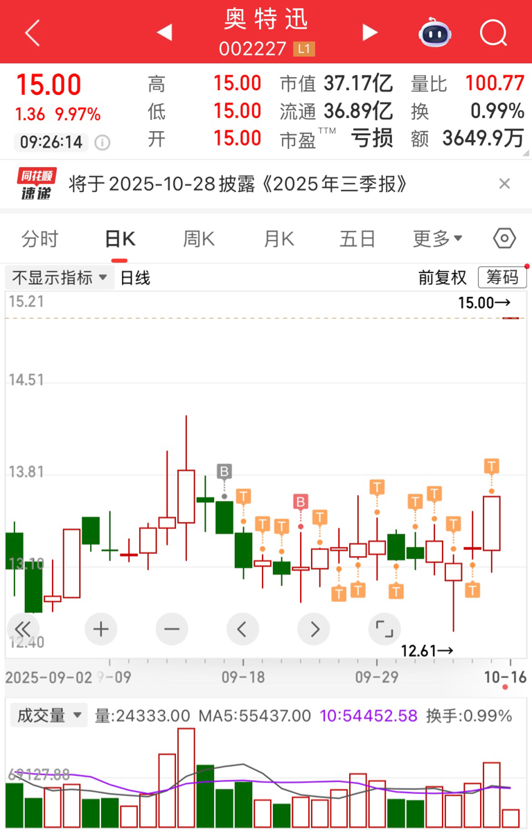 $奥 特 迅(SZ002227)$ 目标位17块附近,庄家带点格局会打到月线的箱体顶轨20块