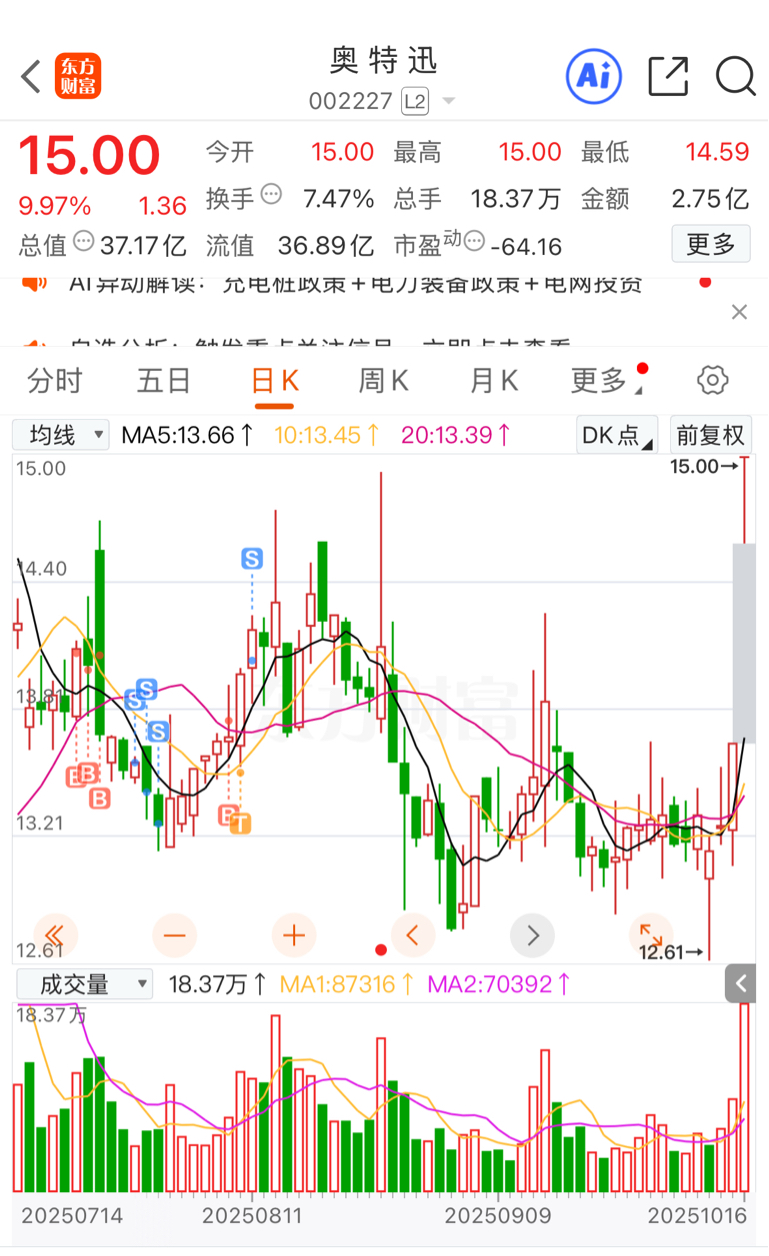 $奥 特 迅(SZ002227)$ 没想到啊,还有开盘一字的一天,路亏过