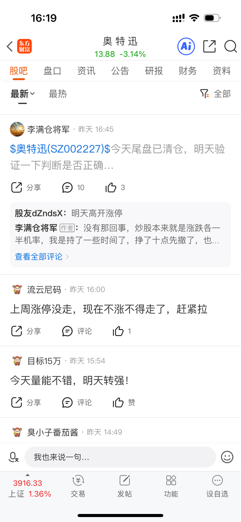 $奥 特 迅(SZ002227)$ 果然验证了我的判断,来回满仓7个点啊…